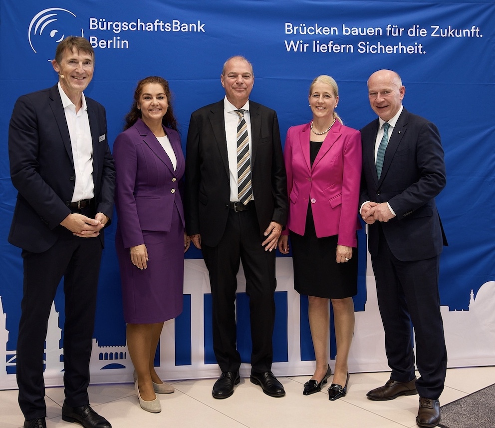 Bei der Veranstaltung „Brücken bauen für Berlins Wirtschaft – 35 Jahre Bürgschaftsbank im vereinten Berlin“ wurde die Staffelstabübergabe von Peter Straub an Melanie Bähr durch die Aufsichtsratsvorsitzende der BBB Dr. Caroline Toffel in Anwesenheit des Regierenden Bürgermeisters von Berlin Kai Wegner bekannt gegeben.